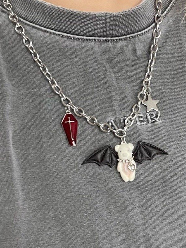 Gothic Winged Bear Pendant Necklace