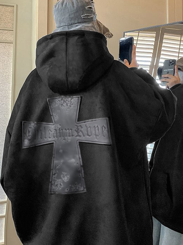 Men’s Suede Cross Print Oversized Hoodie