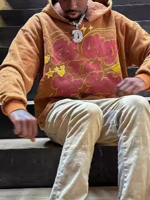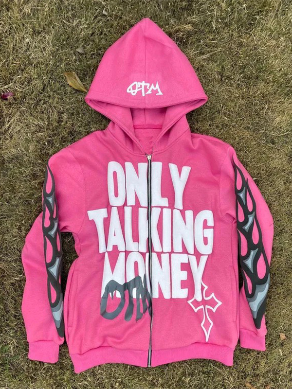 Men’s Foam Letters Flame Print Oversized Hoodie