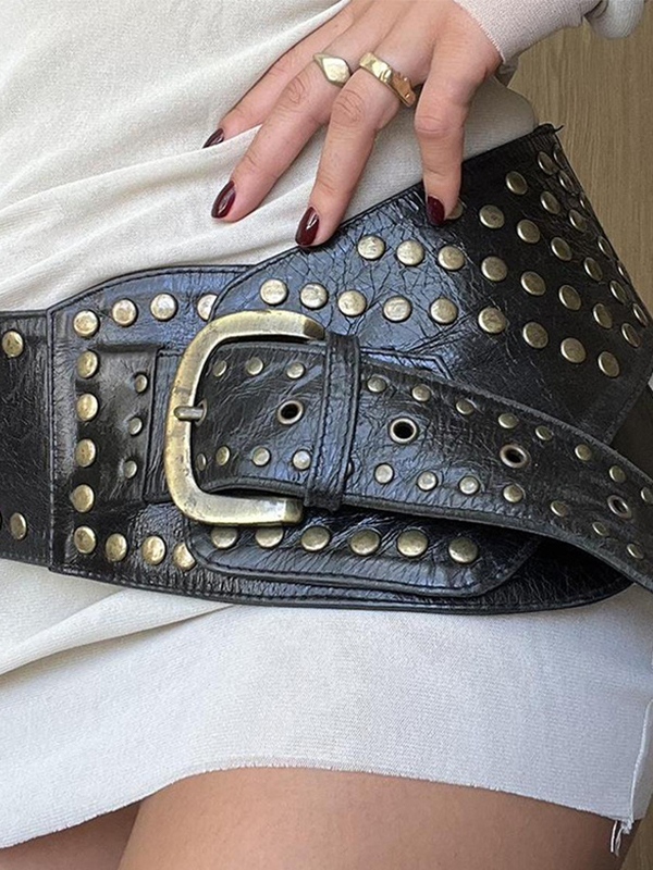 Vintage Eyelet Rivet Decor Wide Buckle Belt