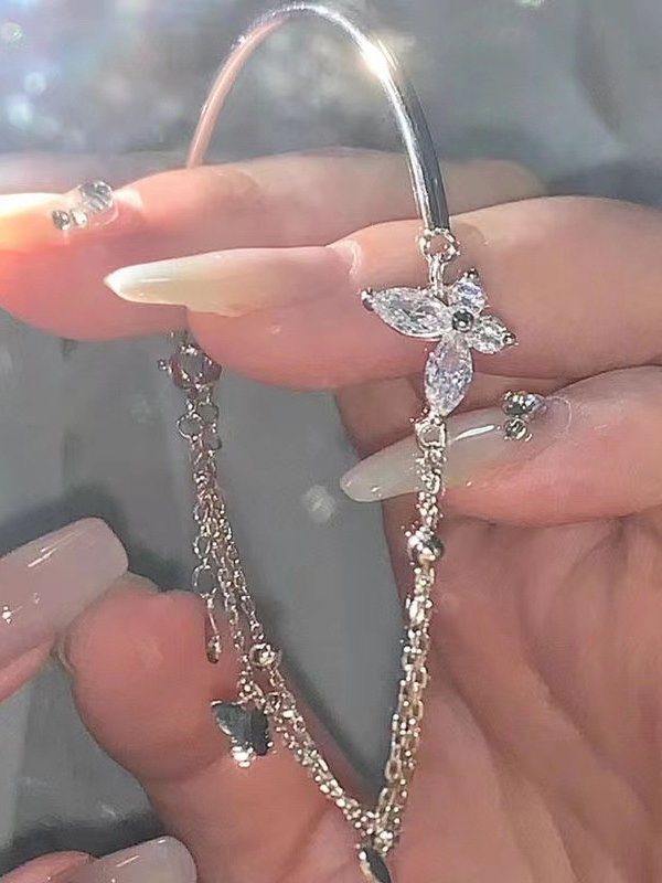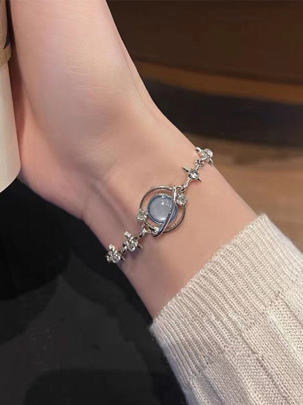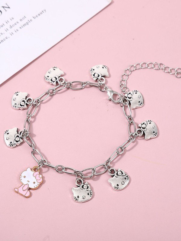 Adjustable Faux Jade Flower Pendant Link Bracelet