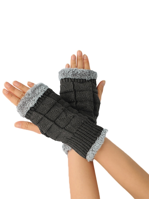 Fingerless Thick Warm Fleece Lining Knitted Gloves