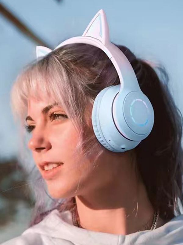 Luminous Gradient Cat Ear Bluetooth Headphone With Mic