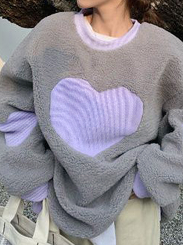 Lambswool Contrast Color Heart Sweatshirt