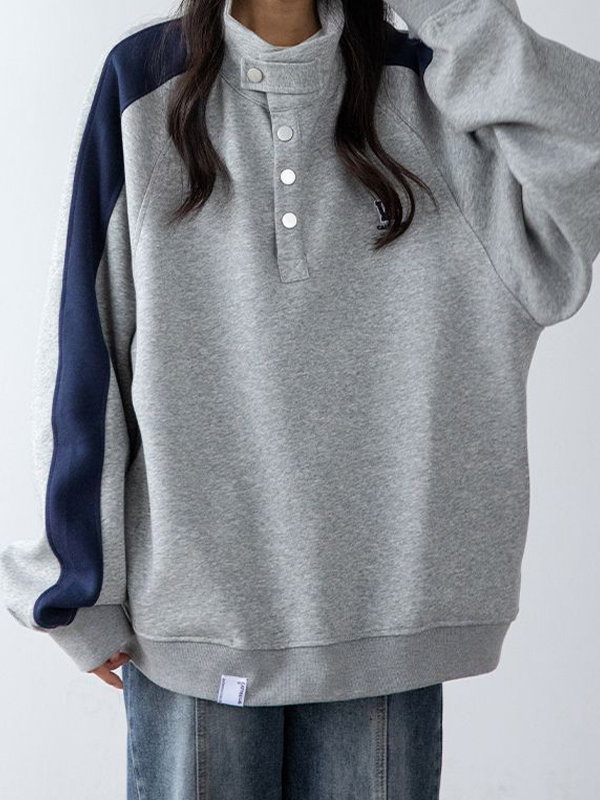 Contrast Color Splice Collar Neck Sweatshirt