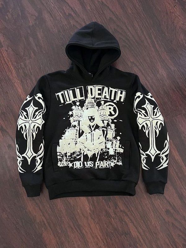 Cross Lettering Oversized Long Sleeve Hoodie