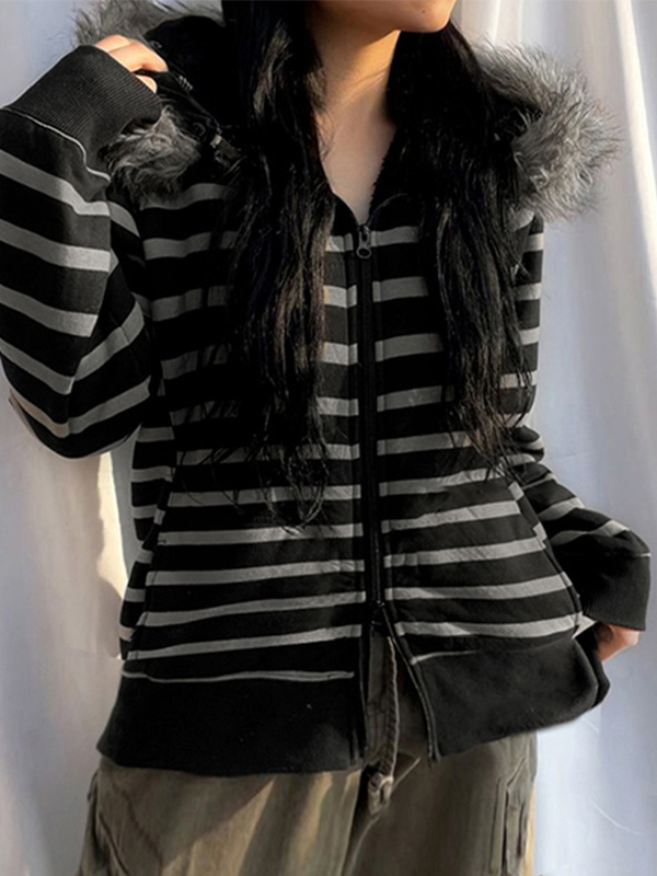Casual Contrasting Stripes Sweatshirts