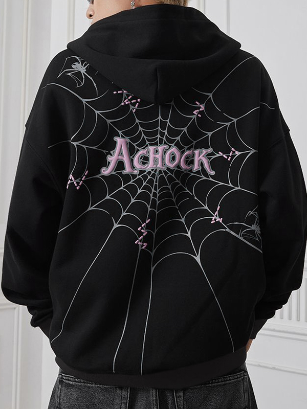 Men’s Street Spider Web Print Zip Up Jacket