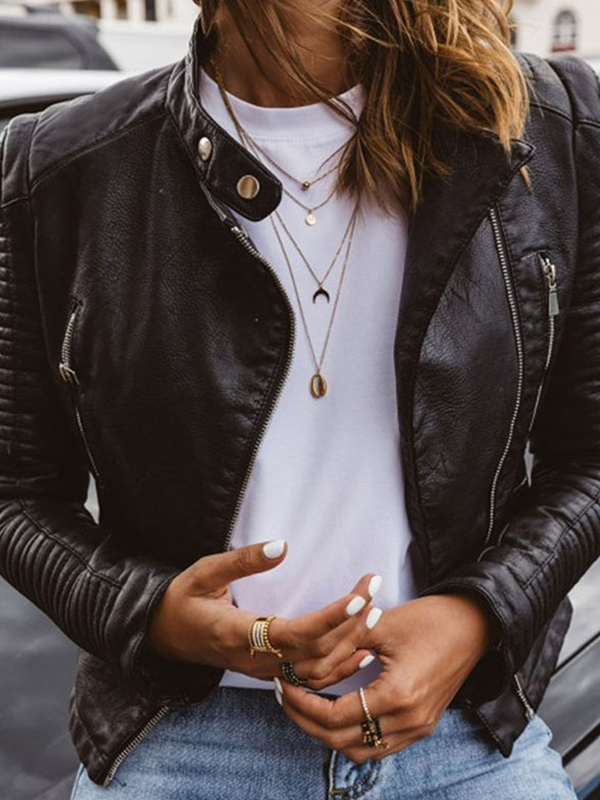 Vintage Pleated Zipper Leather Jacket