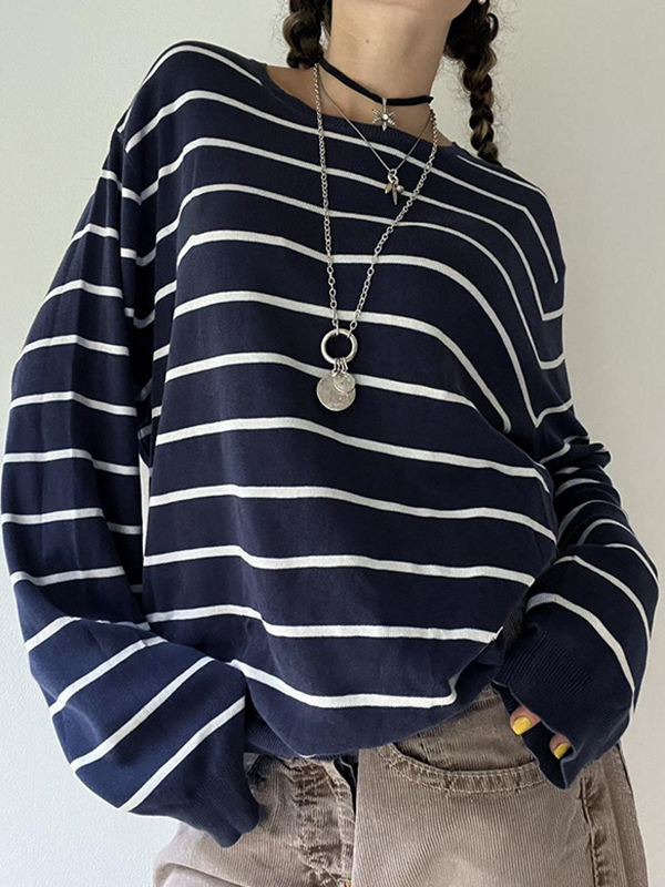Casual Rib Stripe Baggy Knit Sweater