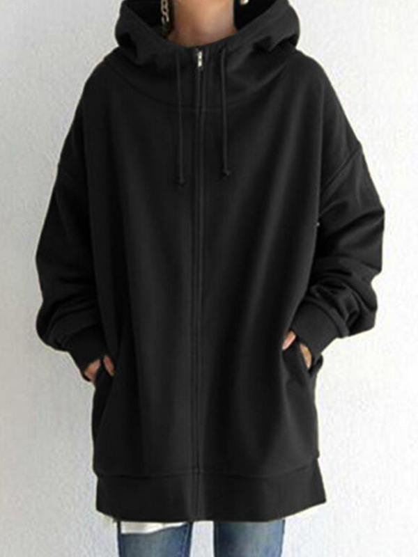 Long Fleece Hooded Zipper Hoodie