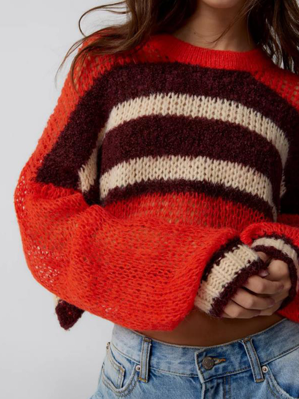 Contrast Color Striped Loose Cropped Sweater