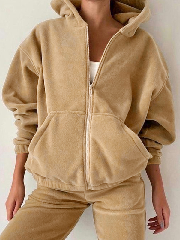 Solid Zip Up Oversized Hoodie&Bound Feet Sweatpants Set